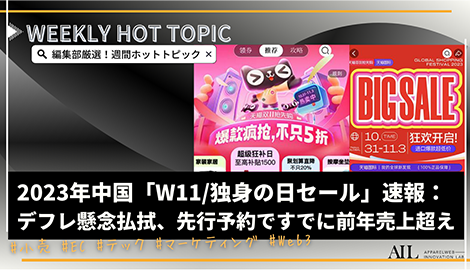 2023年中国「W11(独身の日)セール」速報:デフレ懸念払拭、先行予約ですでに前年売上超え【編集部厳選:週間ホットトピック】