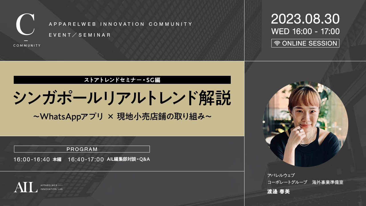 ブランド力、PR/訴求力、マーケティングなどの観点で、現地のリアル出張レポートを交えてご紹介していきます。 シンガポール支社をもつアパレルウェブ海外事業準備室とAIL編集部の対談形式で本編をお届けしています。