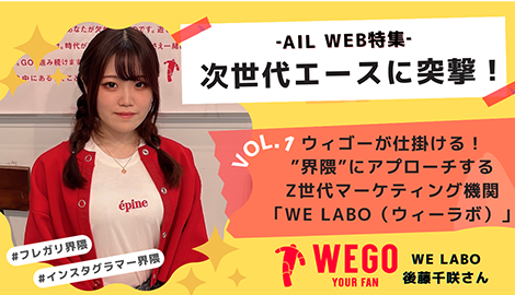 AIL編集部が、会員企業様の次世代エースに突撃取材! 新しいビジネス開拓に取り組む企業で活躍する若手社員に、お仕事の挑戦とその原動力となるモチベーションについてお聞きしていきます。記念すべき第1号は、株式会社ウィゴーの「WE LABO(ウィーラボ)」で所長を務める後藤 千咲さん。