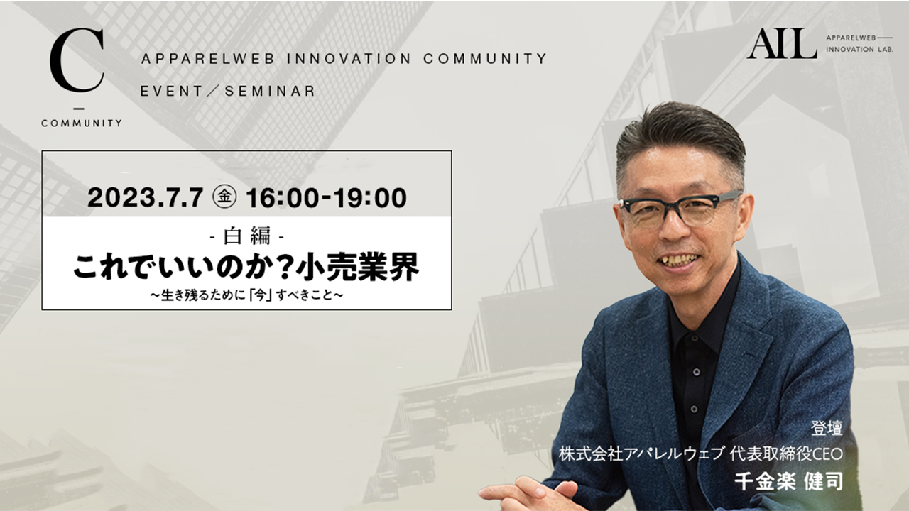 株式会社アパレルウェブが運営するメンバーズラボ、アパレルウェブ・イノベーション・ラボ(AIL)が2023年7月7日に実施したリアルセミナーのアーカイブ動画を特別公開。