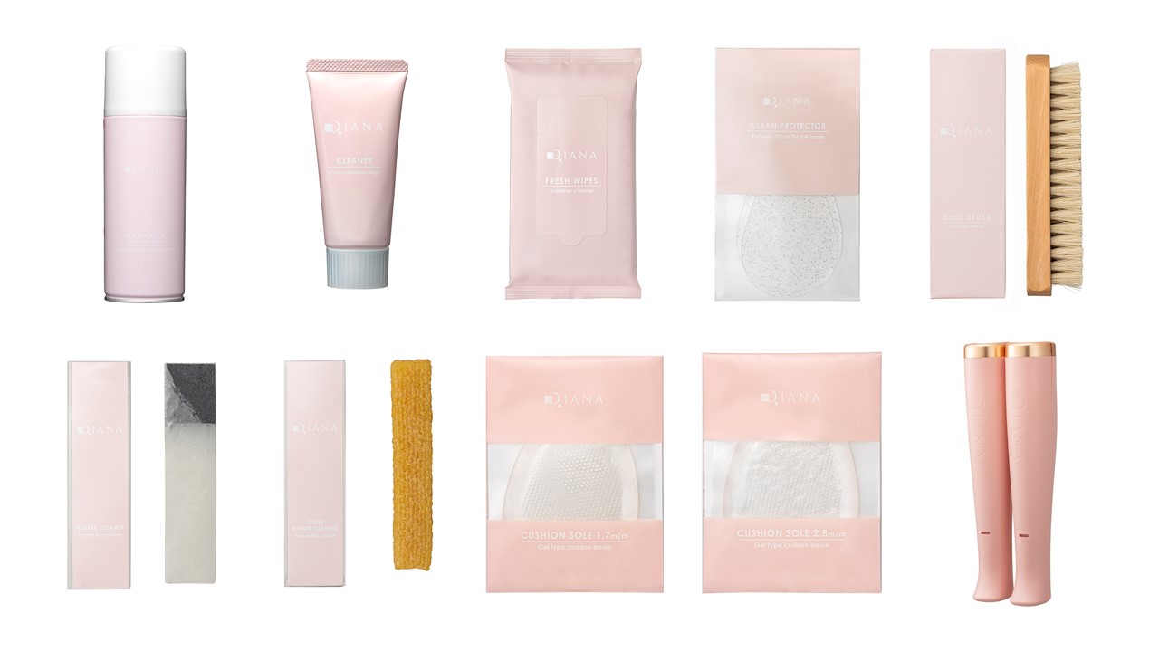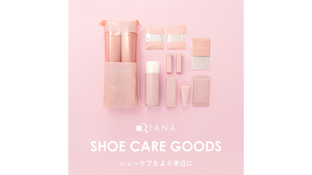 第5回でご紹介するのは、創業70周年を迎えるオリジナル婦人靴・バッグを扱うダイアナ株式会社。同社は2023年6月に、従来のシューケア商品を一部リニューアルし「SHOE CARE GOODS(シュ―ケアグッズ)」として発表。これまでのケア用品のイメージを一新し、ピンクやゴールドの洗練された色調や、女性が手に取りやすいパッケージデザインが特徴です。