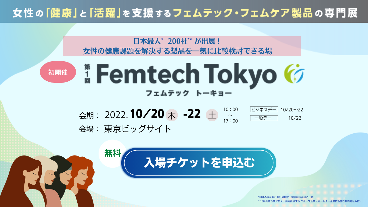 【メディアパートナー選出!】第1回「Femtech Tokyo(フェムテックトーキョー)」2022年10月20日(木)~22日(土)開催、来場者募集中!