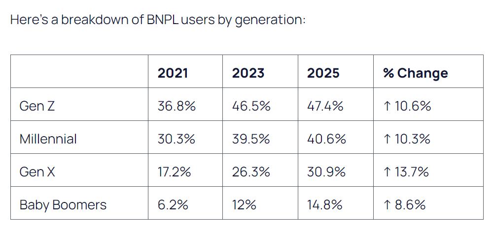 「Buy Now Pay Later」の利用割合は若年層を中心に 14% に増加