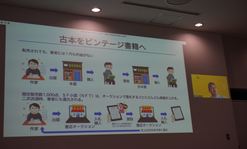 古本屋の事例で、NFTの二次流通の仕組みで解説する阿部 一也氏