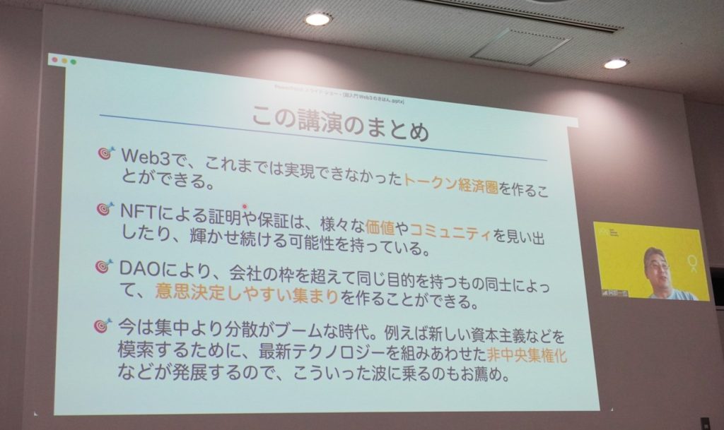 1時間の講演内容でWeb3の基礎知識や今後の注目ポイントを包括的に解説