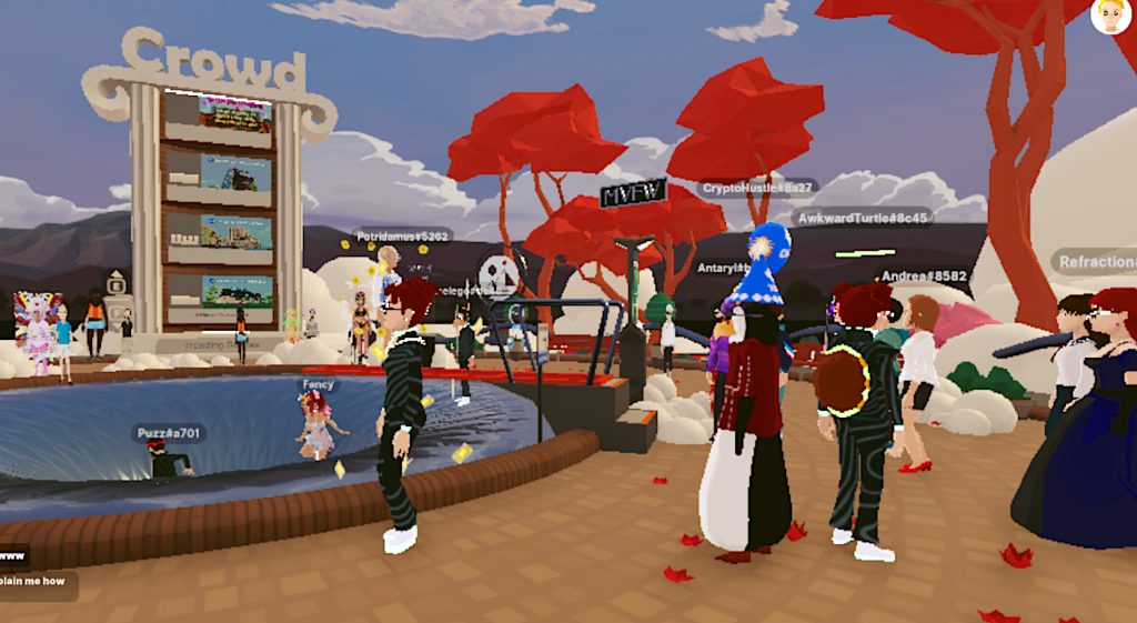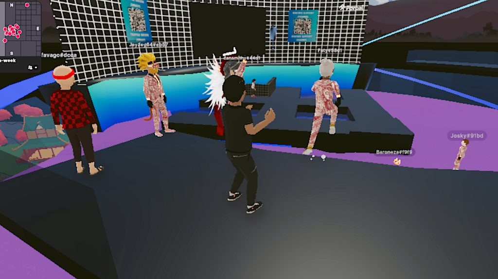 夜通し開催されるものや、毎日決まった時間に催されるものなど多彩なイベントがあるなか、興味深かったのが「Meta Party(メタパーティ)」が主催するダンスパーティです。会場に入ると自身のアバターが勝手に踊り出し、限定販売のファッションアイテムも購入できました。