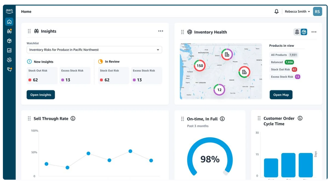 事業主は、自社のサプライチェーン関連データを「AWS Supply Chain」に集中させ、店舗の在庫状況などをリアルタイムで把握することが可能に。データを一括管理することによって、在庫調整に関する意思決定を速やかに行い、正確な在庫状況を反映できるため、小売ビジネス全体を改善できると期待が寄せられています。