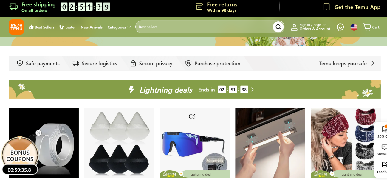 「Temu」のECサイト