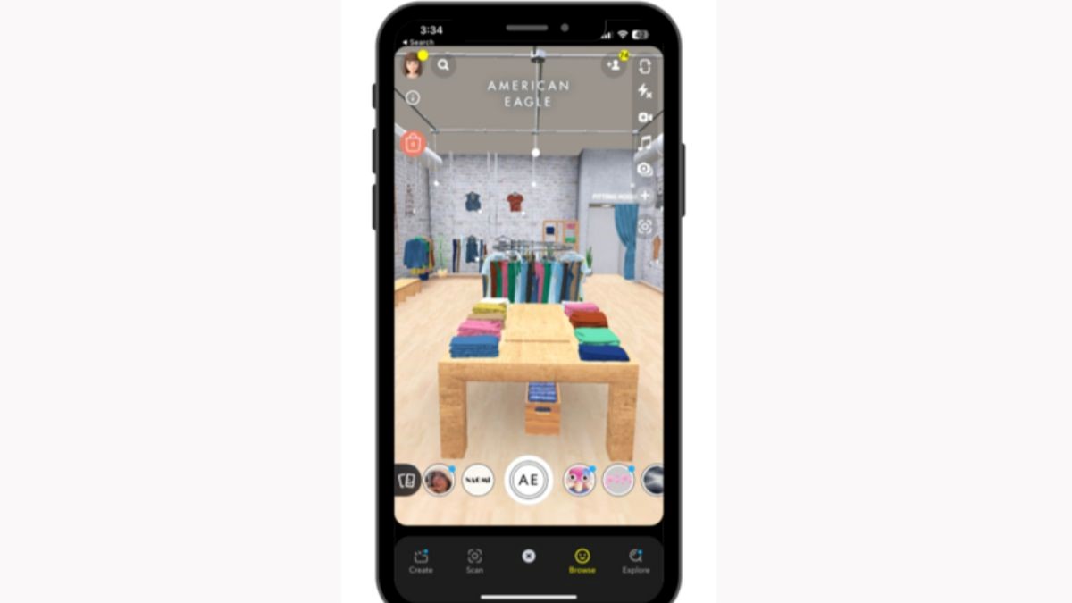 今回の取り組みでは、テクノロジーや環境問題などに敏感なZ世代ユーザーをメインターゲットとしており、二次流通をより浸透させるために「Snapchat(スナップチャット)」とも再連携しています。「Snapchat」の看板機能であるARレンズを活用し、ユーザーが「Snapchat」専用アプリでARレンズを起動し「RE/AE」のバーチャル店舗にアクセスすると、アパレルや雑貨を含め約200の「RE/AE」のデジタルファッションアイテムを購入できます。