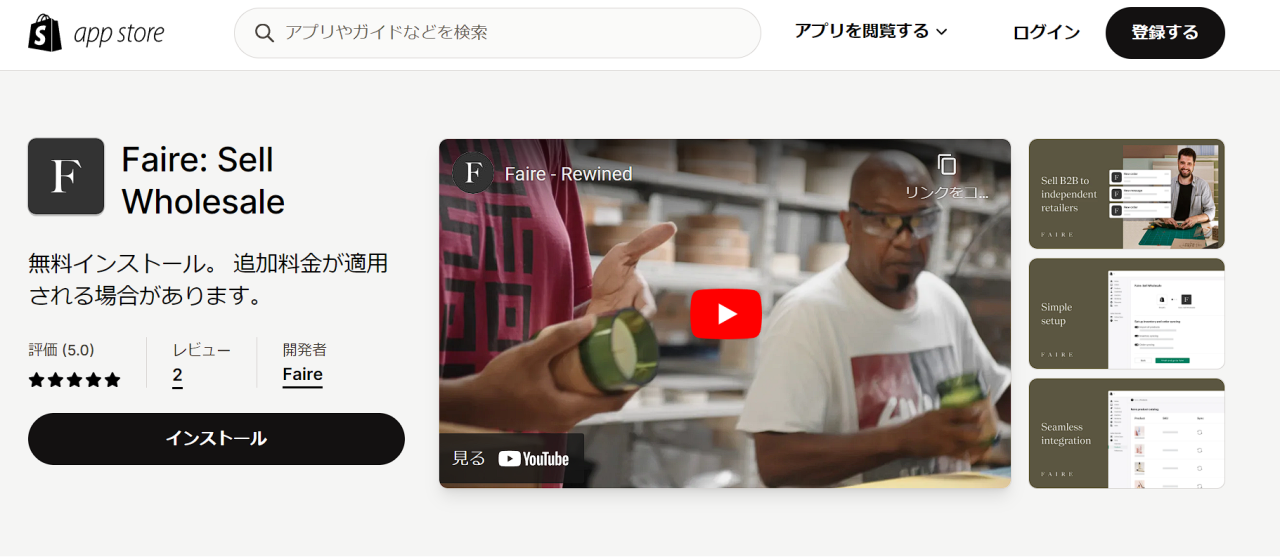 「Shopify」アプリストアでインストールできる「FAIRE」アプリ
