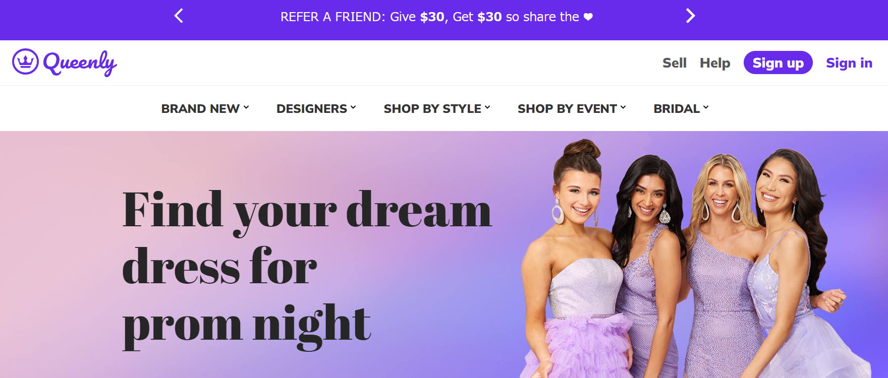 女性のフォーマルドレスに特化したリセールプラットフォーム「Queenly(クイーンリー)」のマーケティング責任者が応じた小売情報サイトGLOSSYのインタビューによると、同社ではTikTokを中心にマーケティングキャンペーンを運用しているといいます。その中の1つである、友人に紹介し30ドルが貰える「友達紹介キャンペーン」では、200万回を超える動画視聴数を記録したという事例も出ています。