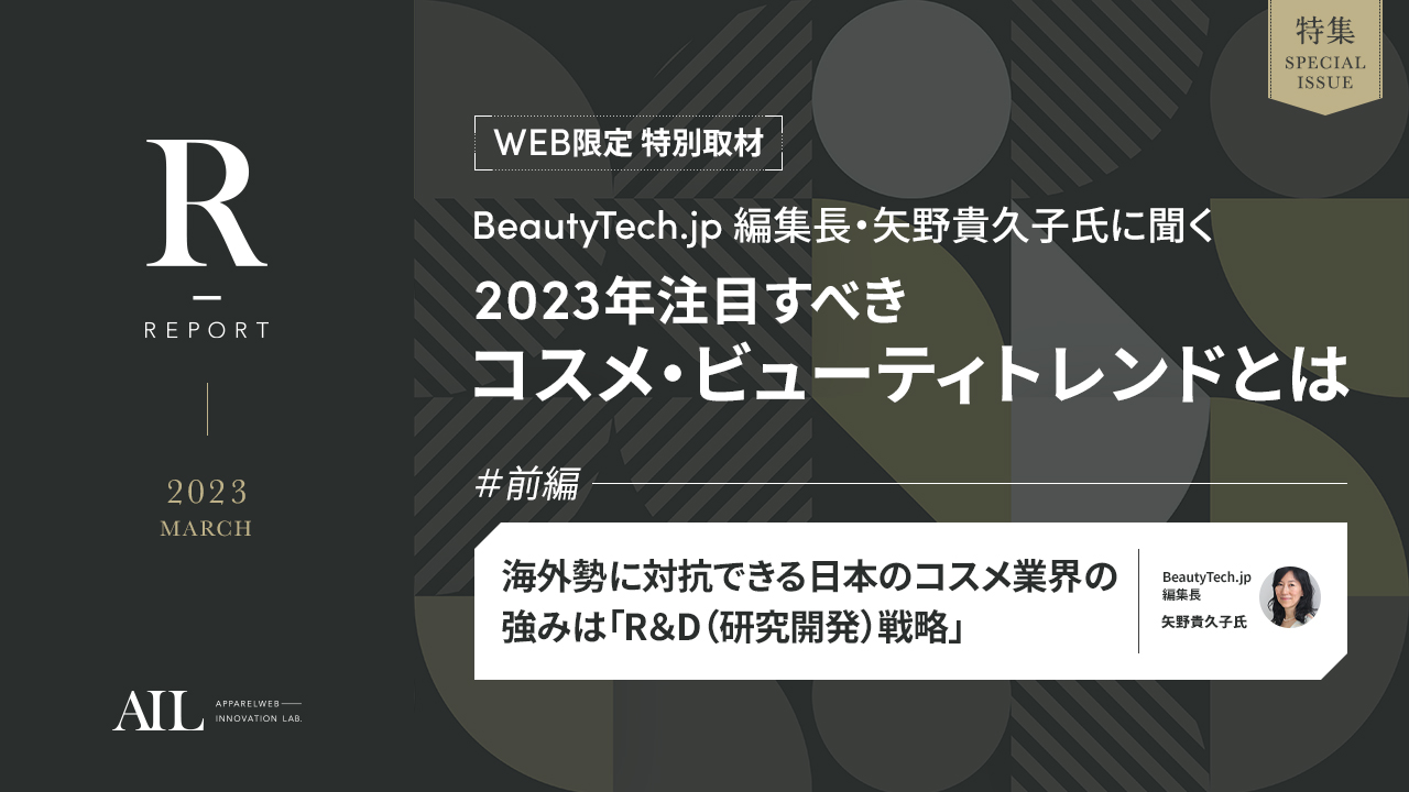 そこで、今年のビューティー業界のトレンド予測、業界の現況について、美容業界の国内外のイノベーション情報を発信する専門メディア「BeautyTech.jp」編集長の矢野 貴久子氏にお話を伺いました。