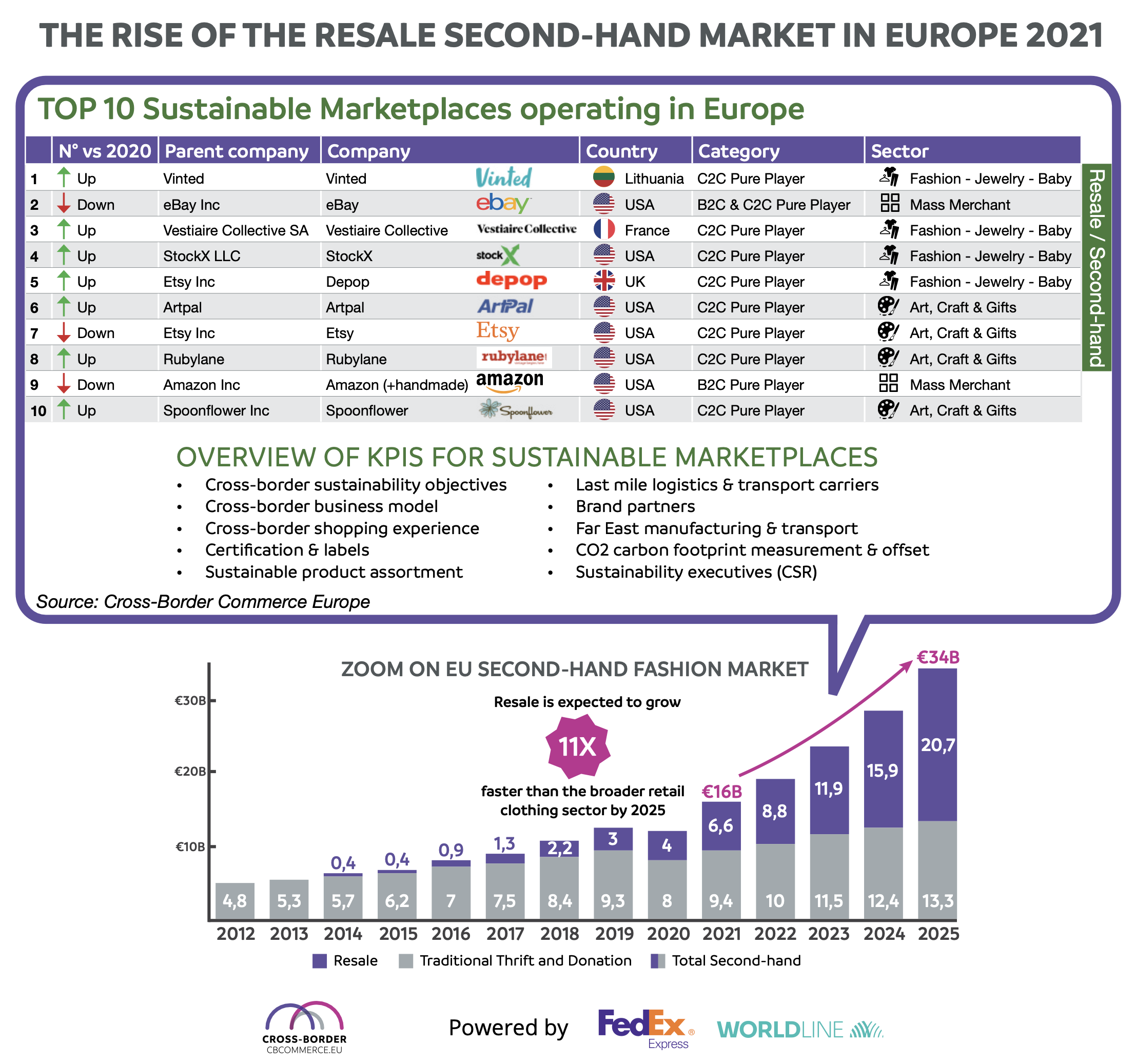 ヨーロッパにおける中古ファッション市場の拡大データ。